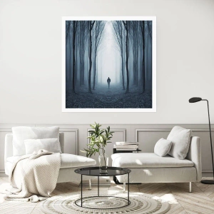 Affiche - Poster - Une silhouette marchant parmi les arbres dans une forêt brumeuse - 100x70cm - Tout est simple et clair - Décoration murale moderne pour le salon et la chambre ARTTOR