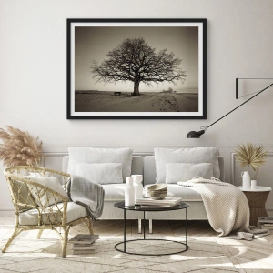 Affiche dans un cadre noir - Poster - Un arbre solitaire dans un champ de sépia - 70x50cm - D'ici à l'éternité - Décoration murale moderne pour le salon et la chambre ARTTOR