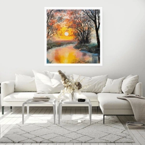 Affiche - Poster - Coucher de soleil sur une rivière avec des arbres - 50x70cm - Climats de printemps - Décoration murale moderne pour le salon et la chambre ARTTOR