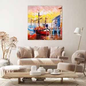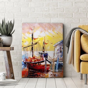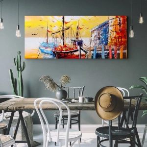 Impression sur toile - Image sur toile - Port pittoresque au coucher du soleil avec des bateaux de pêche - 120x50cm - Bon retour - Décoration murale moderne pour le salon et la chambre ARTTOR