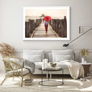 Affiche dans un cadre blanc - Poster - Sur le vieux pont - 40x30 cm