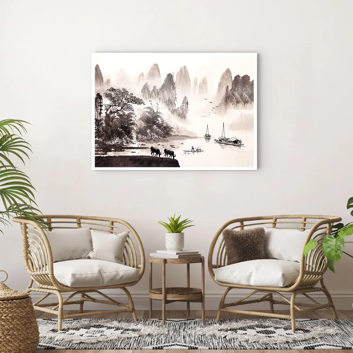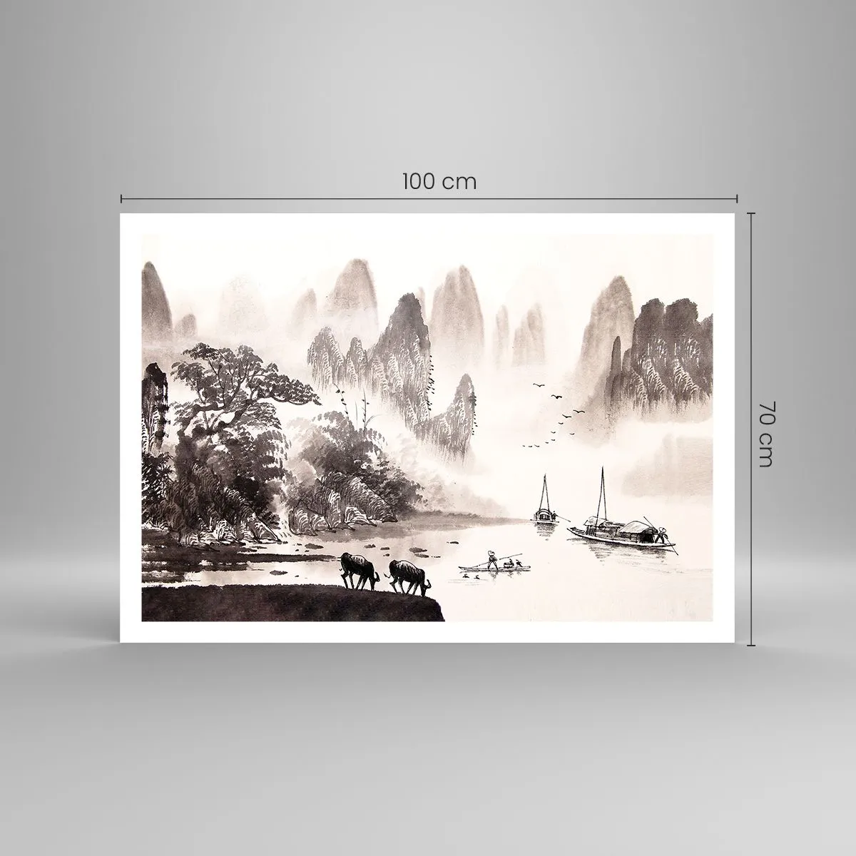 Affiche - Poster - Un paysage pittoresque de style asiatique avec des montagnes brumeuses - 100x70cm - Le quotidien exotique de l'Orient - Décoration murale moderne pour le salon et la chambre ARTTOR