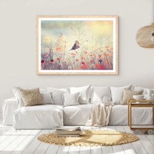 Affiche dans un chêne clair - Poster - Portrait d'oiseau sur pré en fond - 50x50 cm