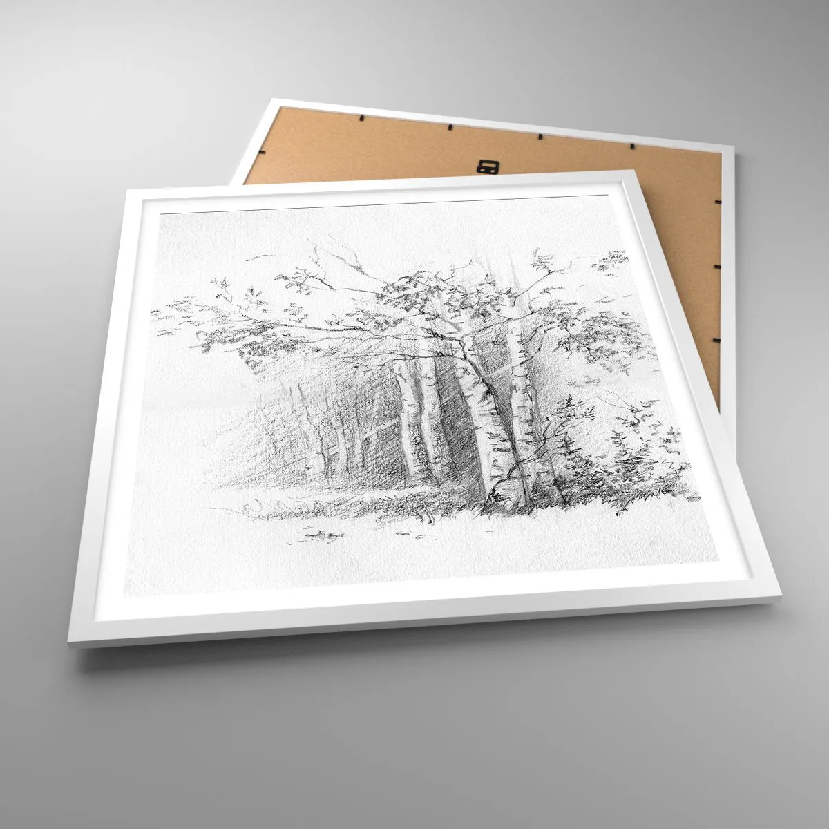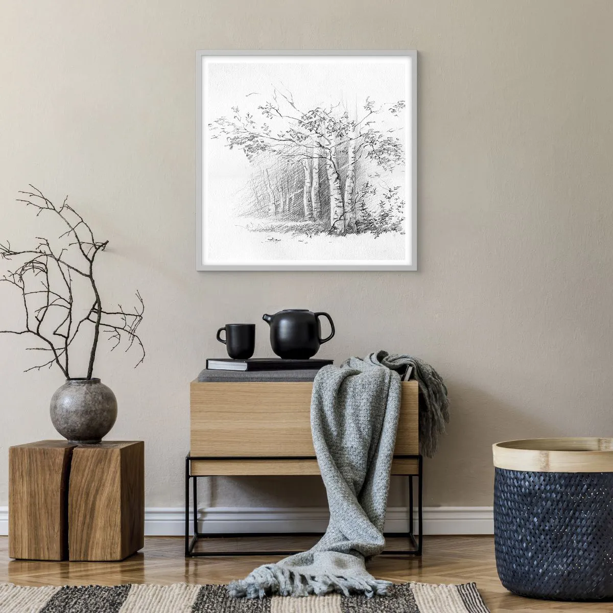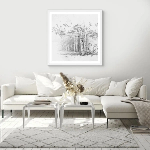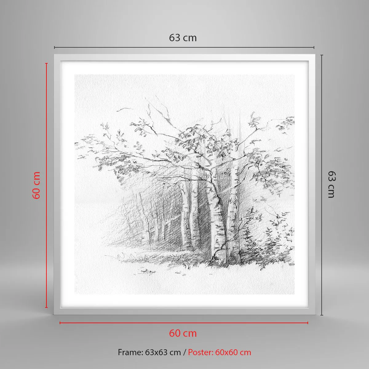 Affiche dans un cadre blanc - Poster - Lumière d'une forêt de bouleaux - 60x60 cm