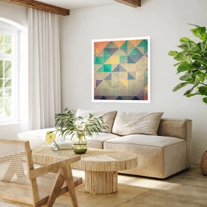 Affiche - Poster - Une composition colorée de triangles géométriques dans des tons pastel. - 100x70cm - République des triangles - Décoration murale moderne pour le salon et la chambre ARTTOR