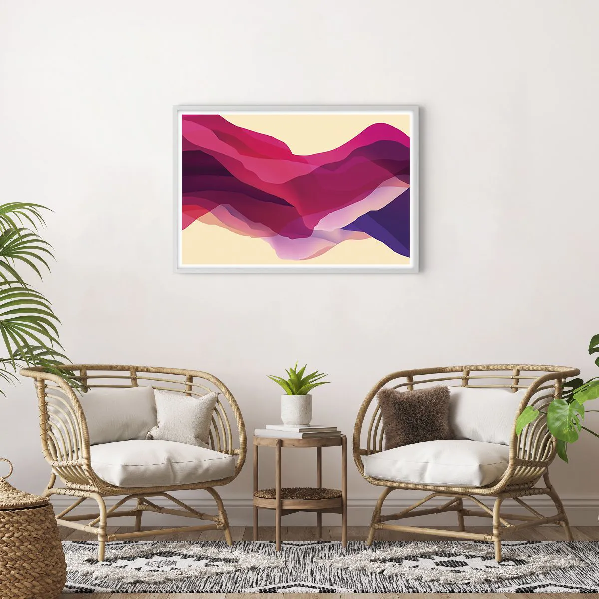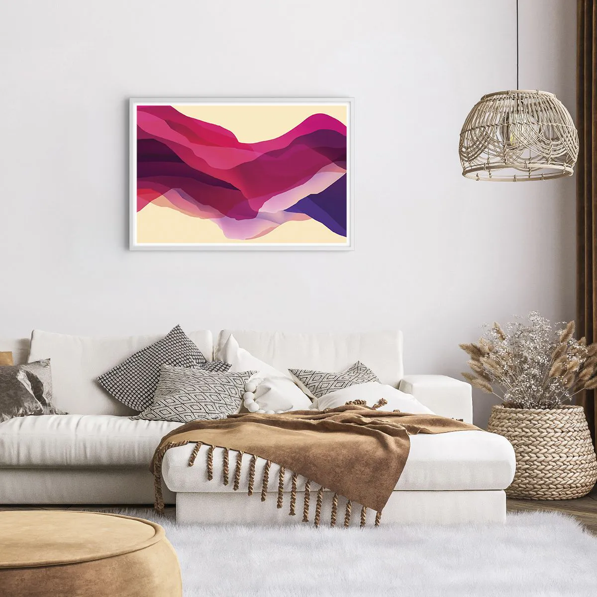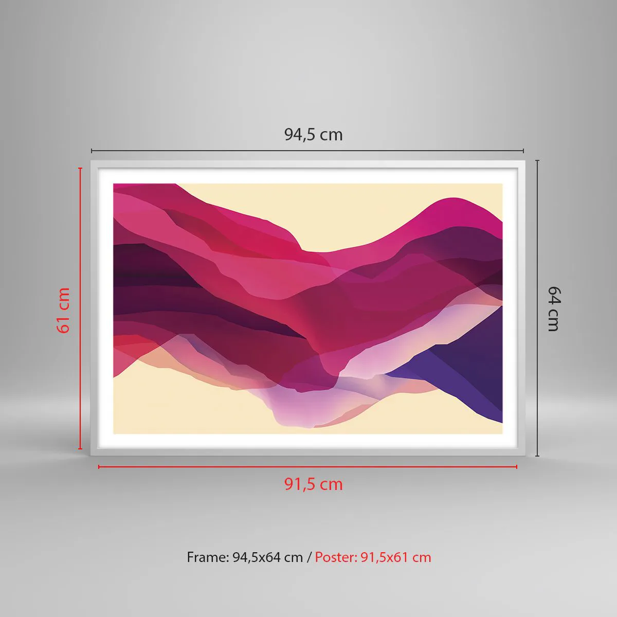 Affiche dans un cadre blanc - Poster - Vagues pourpre - 91x61 cm