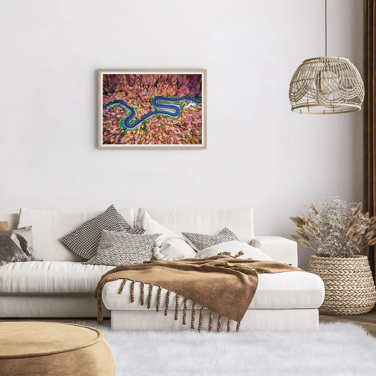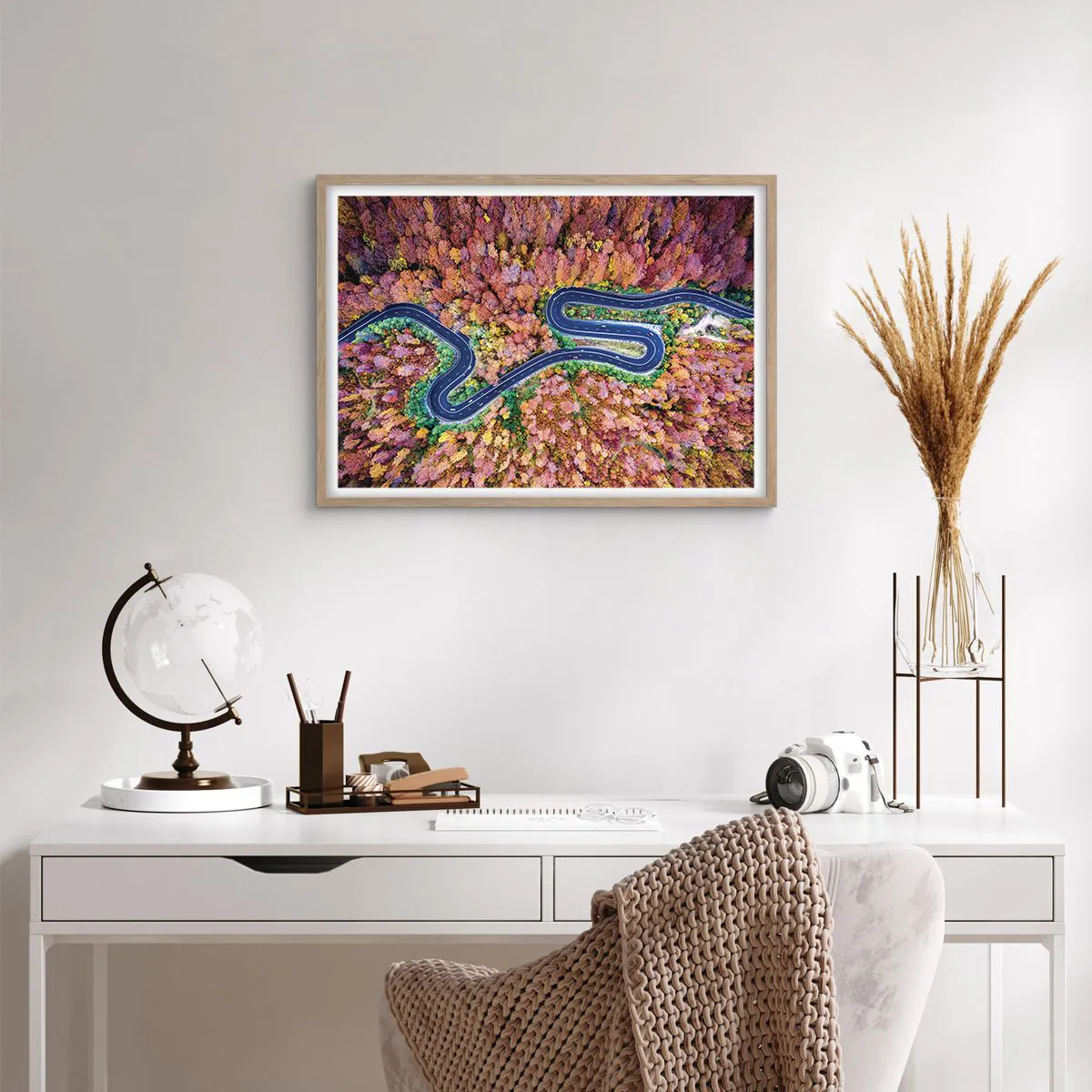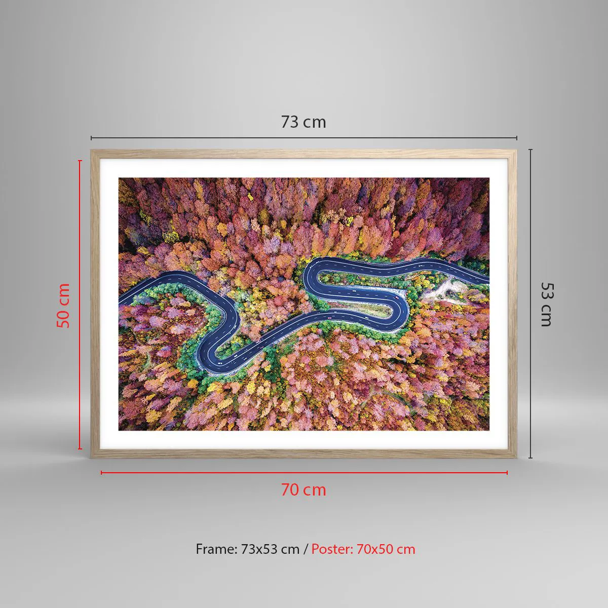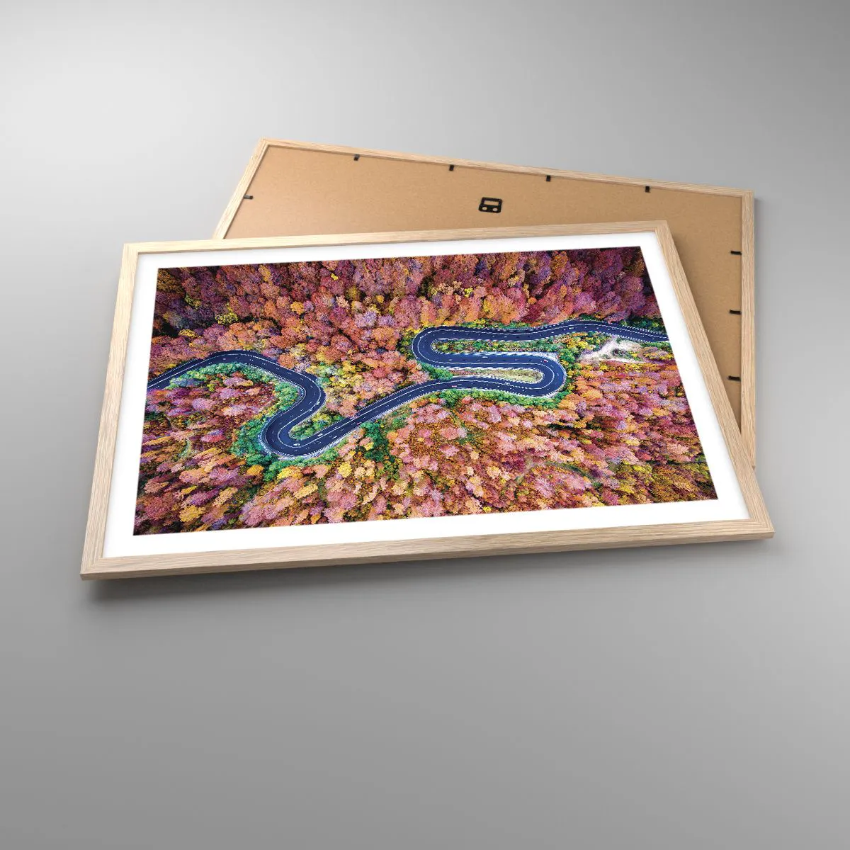 Affiche dans un chêne clair - Poster - Route sinueuse à travers la forêt - 70x50 cm