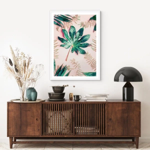 Affiche dans un cadre blanc - Poster - Étude de verdure sur fond rose - 91x61 cm