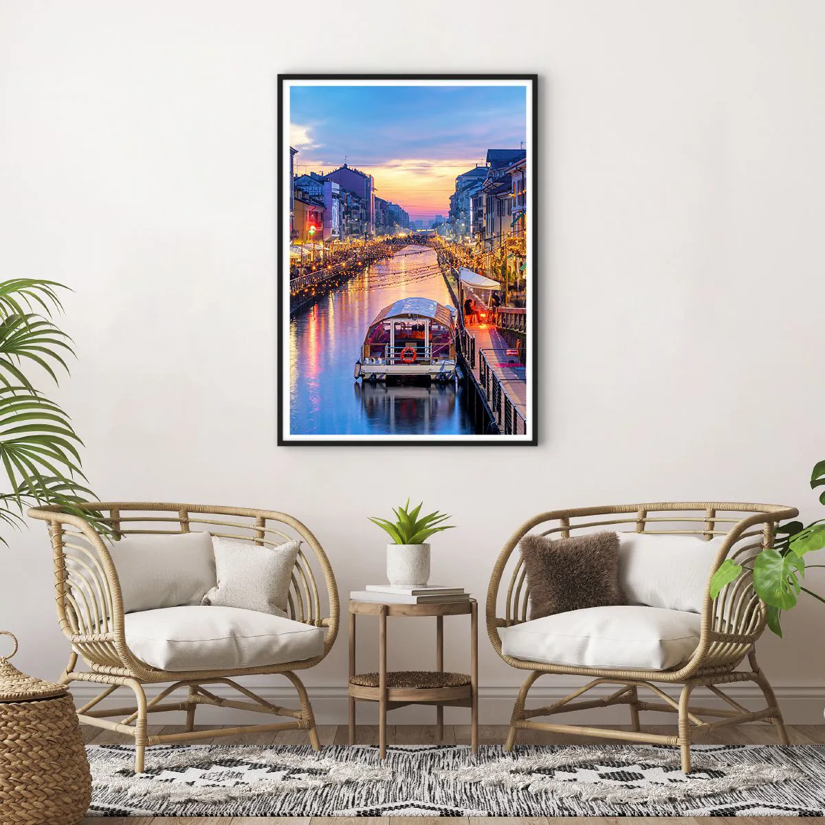 Affiche dans un cadre noir - Poster - Soirée de lumière et de jeu - 70x100 cm