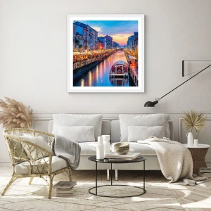 Affiche dans un cadre blanc - Poster - Soirée de lumière et de jeu - 50x50 cm