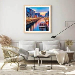 Affiche dans un chêne clair - Poster - Soirée de lumière et de jeu - 100x70 cm