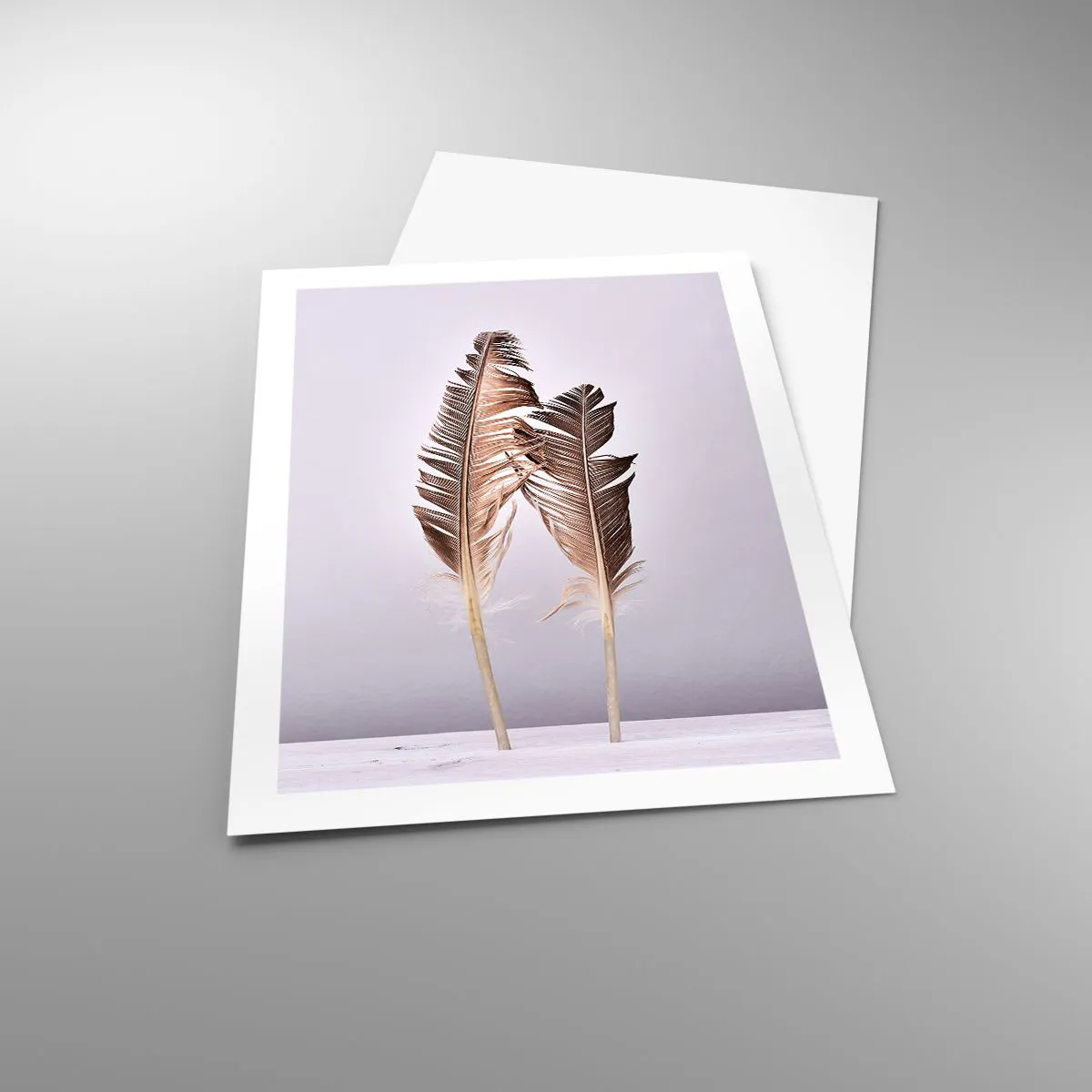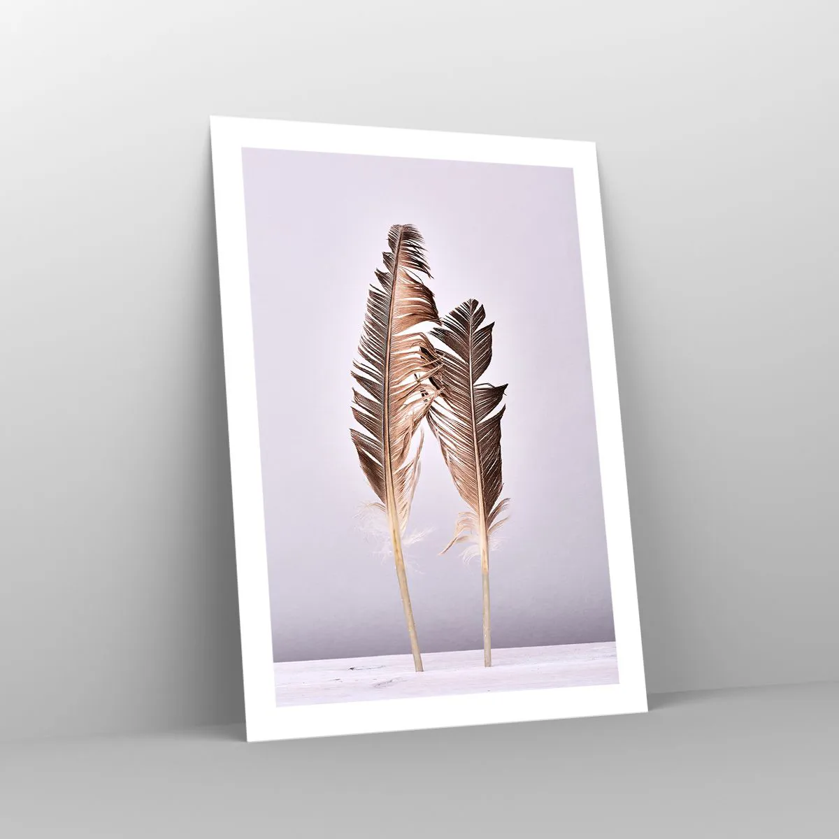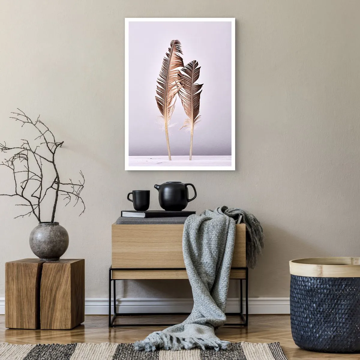 Affiche - Poster - Deux plumes brunes sur fond clair dans un style minimaliste - 50x70cm - Face au néant - Décoration murale moderne pour le salon et la chambre ARTTOR