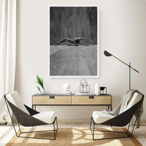 Affiche - Poster - Une danseuse dans une pose artistique sur une scène en bois - 50x70cm - Symétrie trouvée - Décoration murale moderne pour le salon et la chambre ARTTOR
