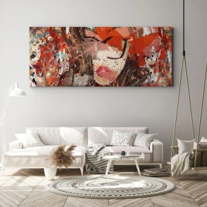 Impression sur toile - Image sur toile - Portrait abstrait d'une femme aux couleurs intenses - 140x50cm - Personne ne sait ce que tu es vraiment - Décoration murale moderne pour le salon et la chambre ARTTOR