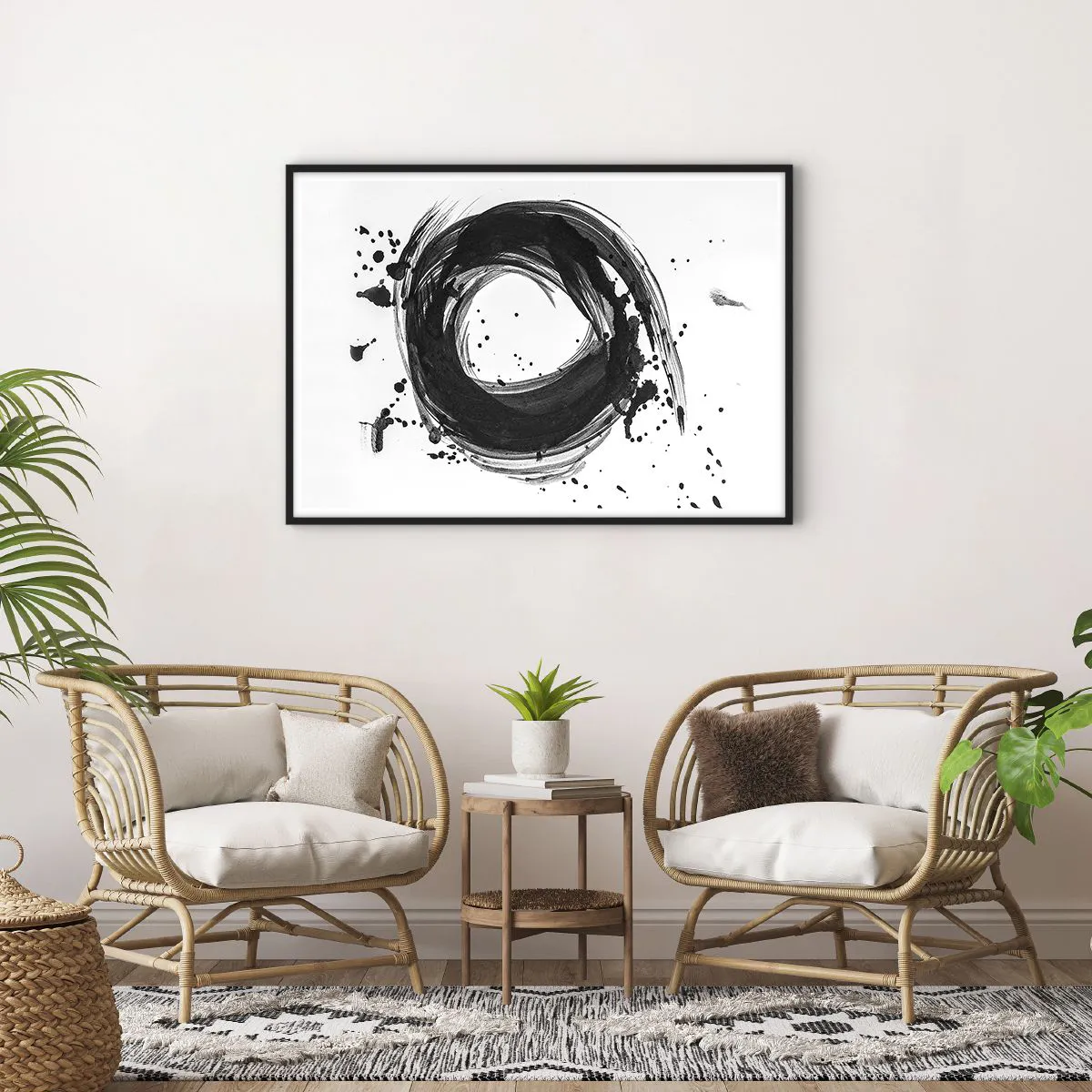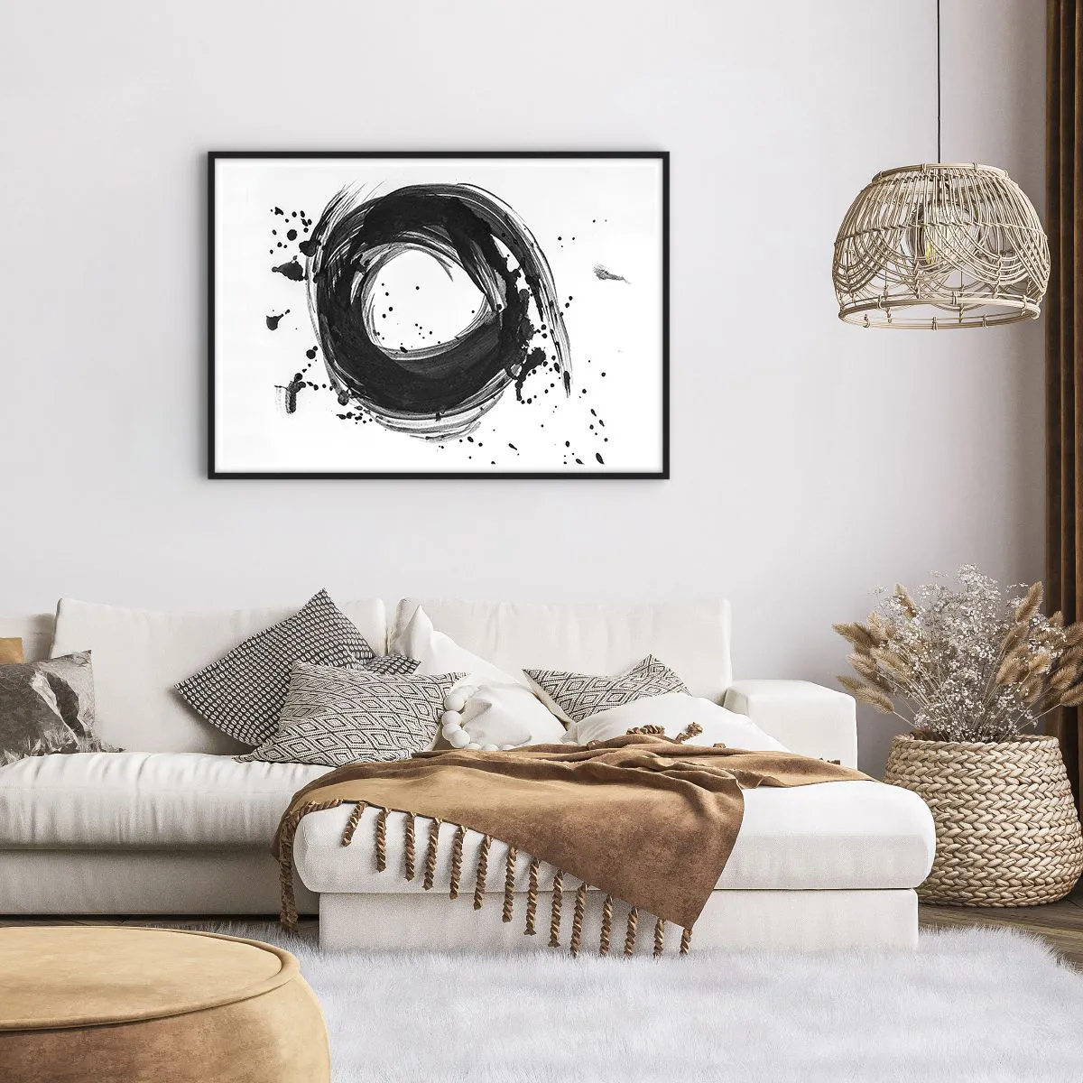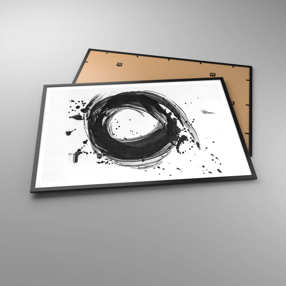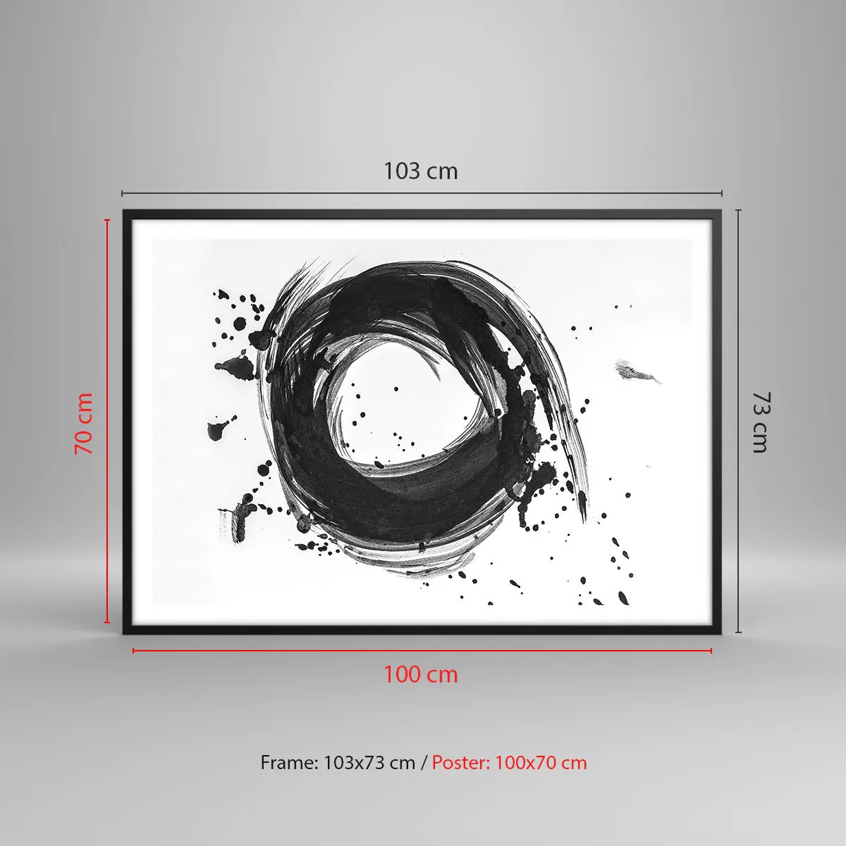 Affiche dans un cadre noir - Poster - Abstraction noire en forme de cercle sur fond blanc - 100x70cm - Le tourbillon de la création - Décoration murale moderne pour le salon et la chambre ARTTOR