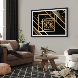 Affiche dans un cadre noir - Poster - Géométrie en or - 60x60 cm