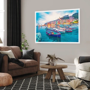 Affiche - Poster - Maisons et bateaux colorés dans un cadre balnéaire - 50x70cm - Soirée colorée au port - Décoration murale moderne pour le salon et la chambre ARTTOR