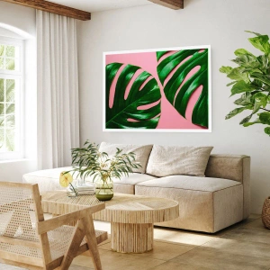 Affiche - Poster - Feuilles de Monstera sur fond rose dans un style minimaliste - 50x70cm - Rendez-vous vert - Décoration murale moderne pour le salon et la chambre ARTTOR