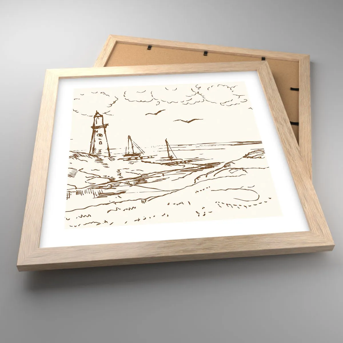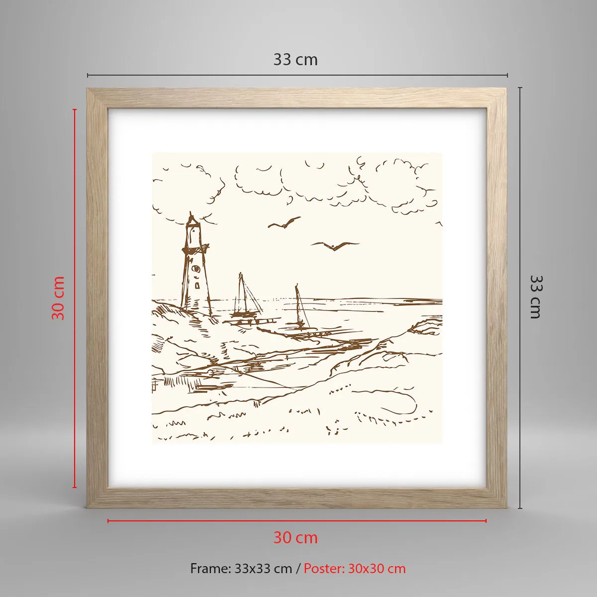 Affiche dans un chêne clair - Poster - Esquisse de souvenirs d'été - 30x30 cm