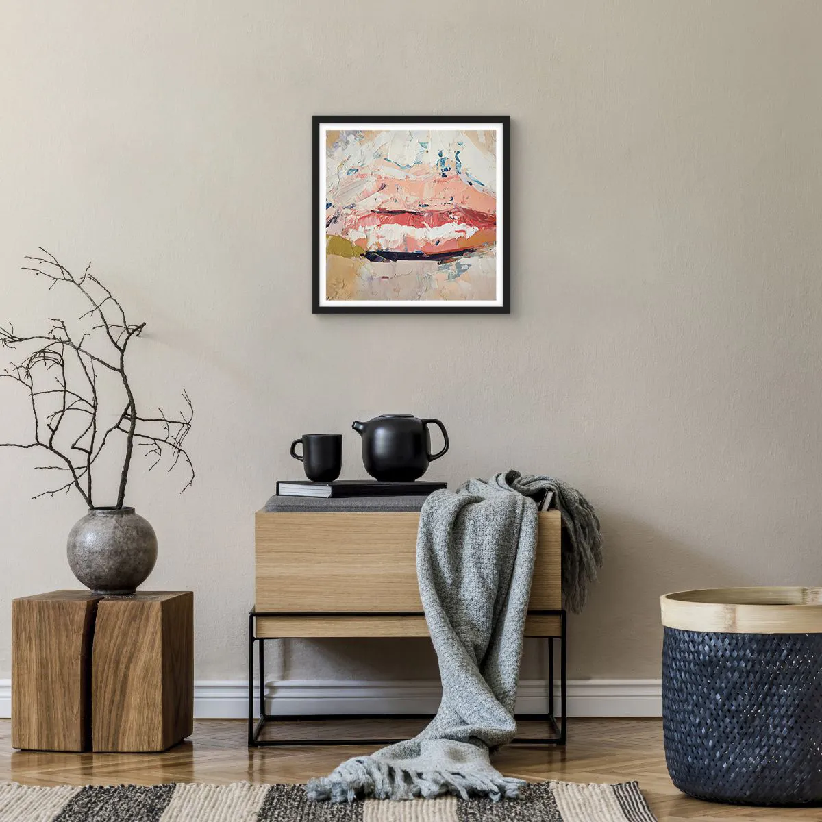 • Art, Abstrait, Lèvres, Personnes, Pastel, Art, Pour la salle à manger, Pour le hall, Pour le salon, Pour la chambre, , Orange, Rose, Carré