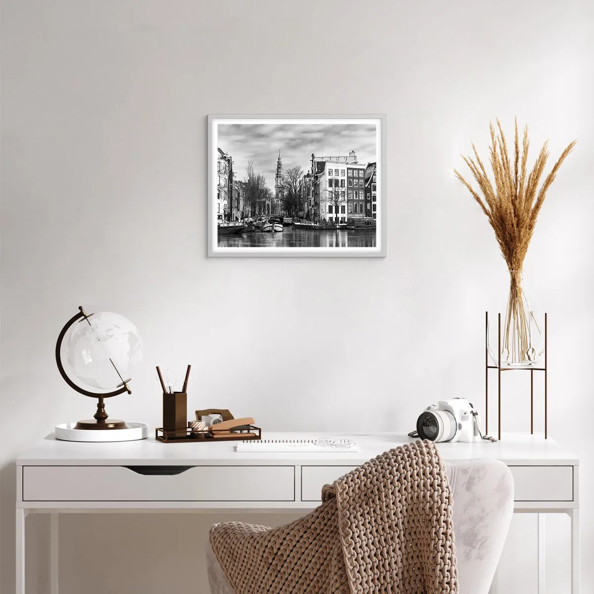 Affiche dans un cadre blanc - Poster - Climat d'Amsterdam - 50x40 cm