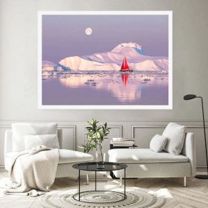 Affiche - Poster - Une voile rouge sur fond d'icebergs sous la pleine lune - 50x70cm - La chaleur de la voile, le froid de la glace - Décoration murale moderne pour le salon et la chambre ARTTOR