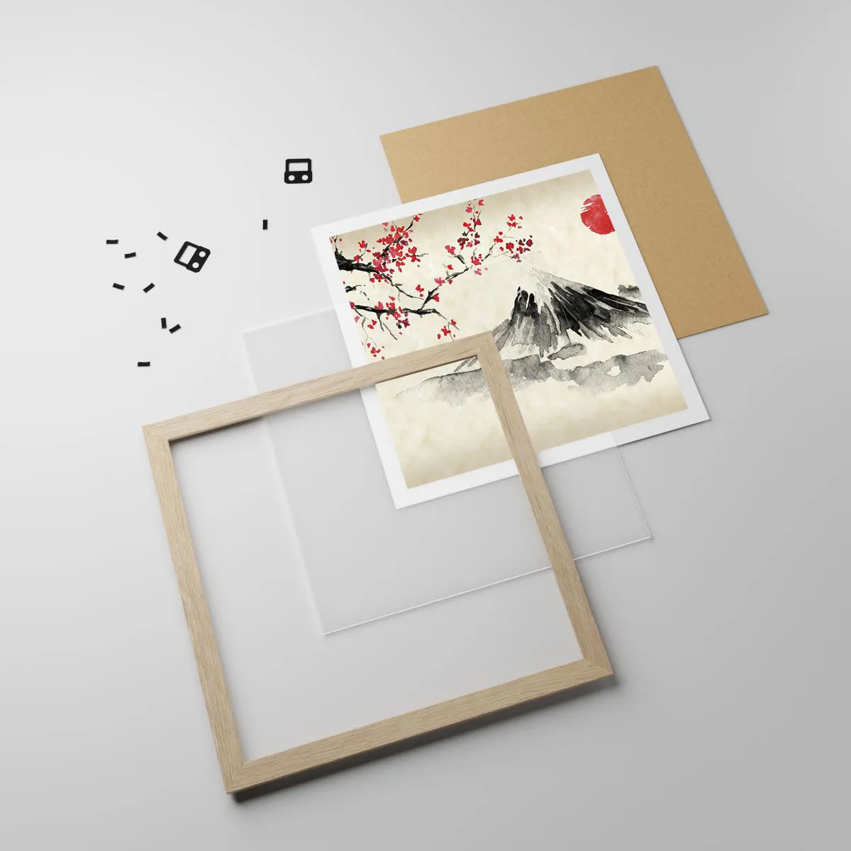 Affiche dans un chêne clair - Poster - Tomber amoureux du Japon - 40x40 cm