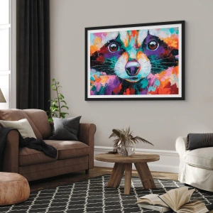 Affiche dans un cadre noir - Poster - Portrait abstrait coloré d'un animal avec un œil expressif - 50x70cm - Uniquement de belles émotions - Décoration murale moderne pour le salon et la chambre ARTTOR