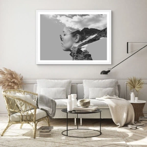 Affiche dans un cadre blanc - Poster - Portrait de montagnes et nuages - 40x50 cm