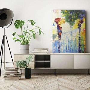Impression sur toile - Image sur toile - Une promenade avec un parapluie dans un paysage pluvieux coloré - 120x80cm - Et tout est clair - Décoration murale moderne pour le salon et la chambre ARTTOR