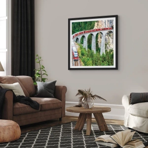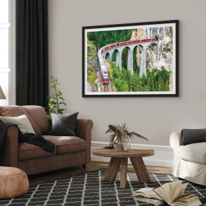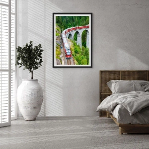 • Pont ferroviaire, paysage de montagne, train de voyageurs, Paysages, Forêts, Ponts, Automobile, Pour le bureau, Pour le bureau, Pour la salle à manger, Pour le hall, Pour le salon, Pour la chambre, Rouge, Gris, Vert, Verticale