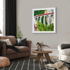 Affiche dans un cadre blanc - Poster - Chemin de fer avec vue sur la montagne - 100x70 cm