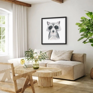 Affiche dans un cadre noir - Poster - Un raton laveur mignon représenté sur un fond blanc - 50x70cm - Un moment pour s'émouvoir - Décoration murale moderne pour le salon et la chambre ARTTOR