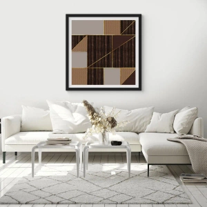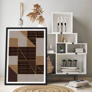Les nuances marron associées à des détails dorés créent une composition sophistiquée et contrastée. Les motifs géométriques confèrent à l'affiche une expression artistique, et ses couleurs subtiles en font un élément idéal pour une variété de styles d'intérieur.