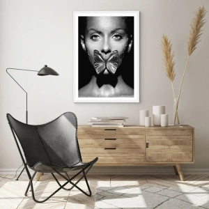 Affiche dans un cadre blanc - Poster - Baiser papillon - 60x60 cm