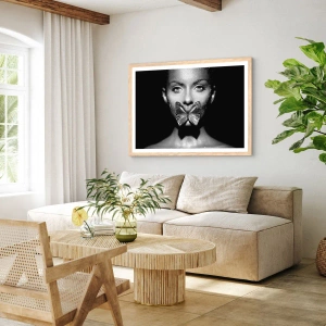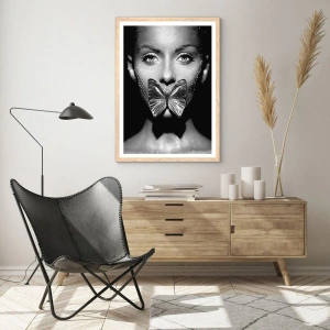 Affiche dans un chêne clair - Poster - Baiser papillon - 30x40 cm