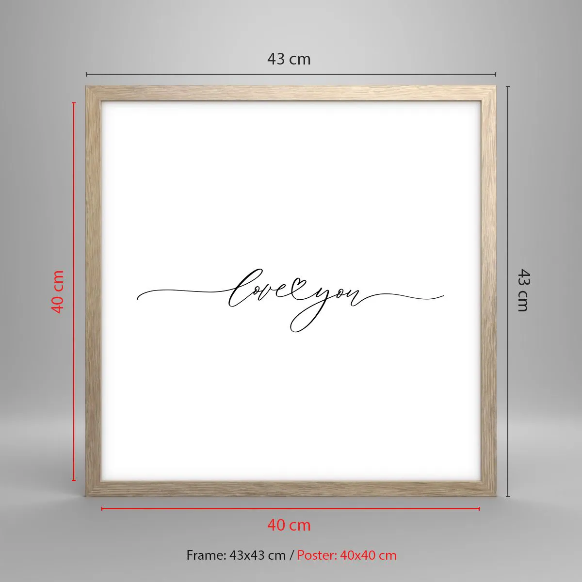 Affiche dans un chêne clair - Poster - Noir sur blanc - 40x40 cm