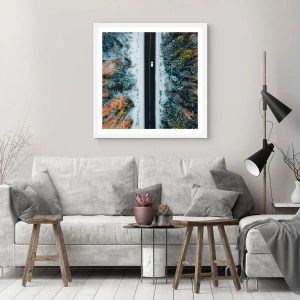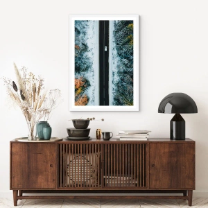 Affiche dans un cadre blanc - Poster - Couper à travers la forêt d'hiver - 60x60 cm