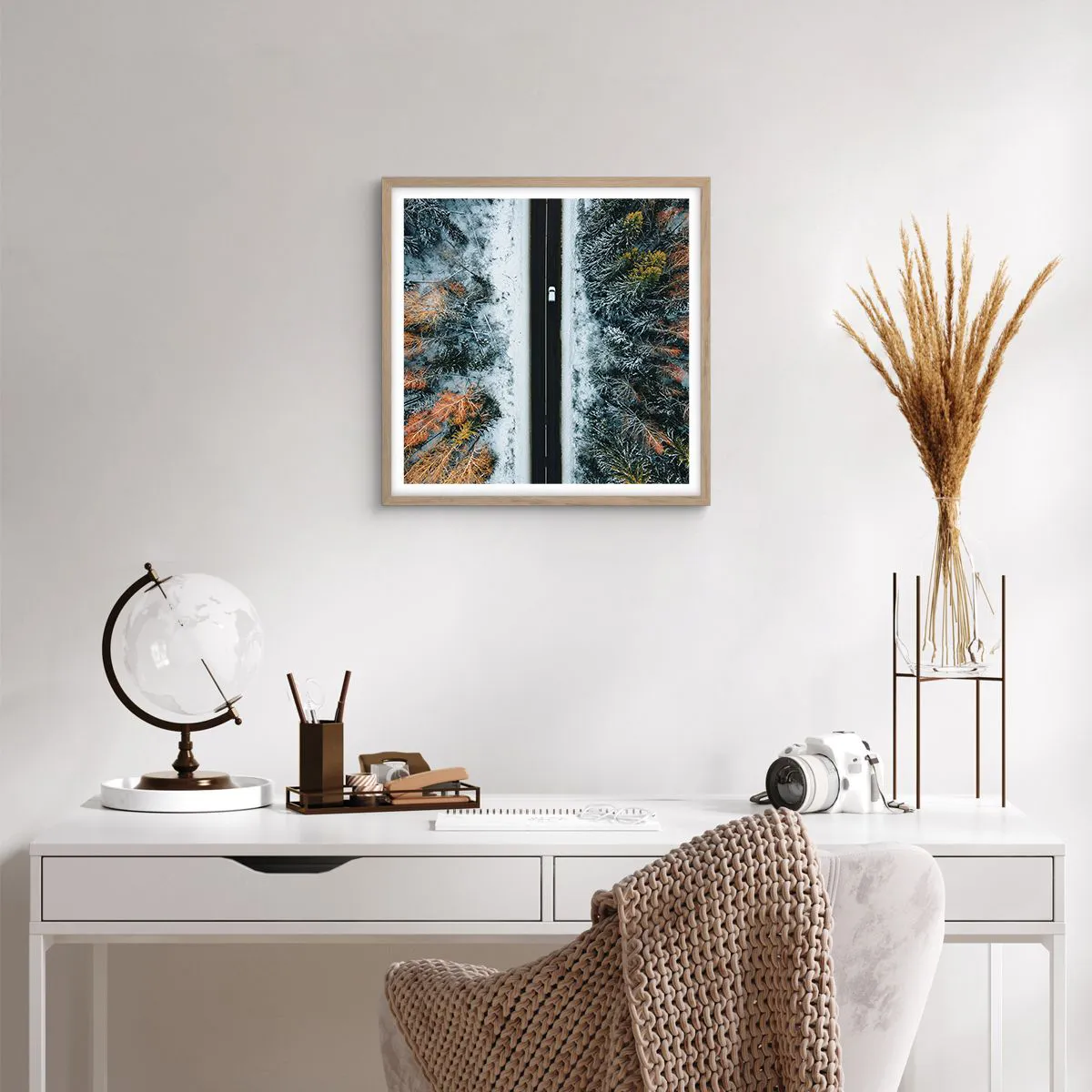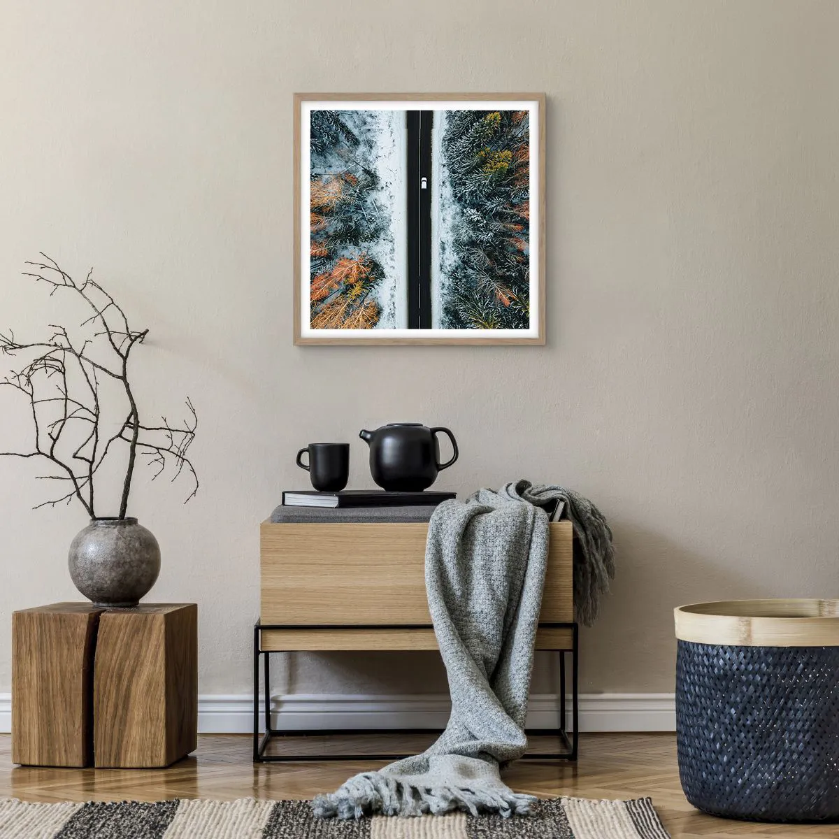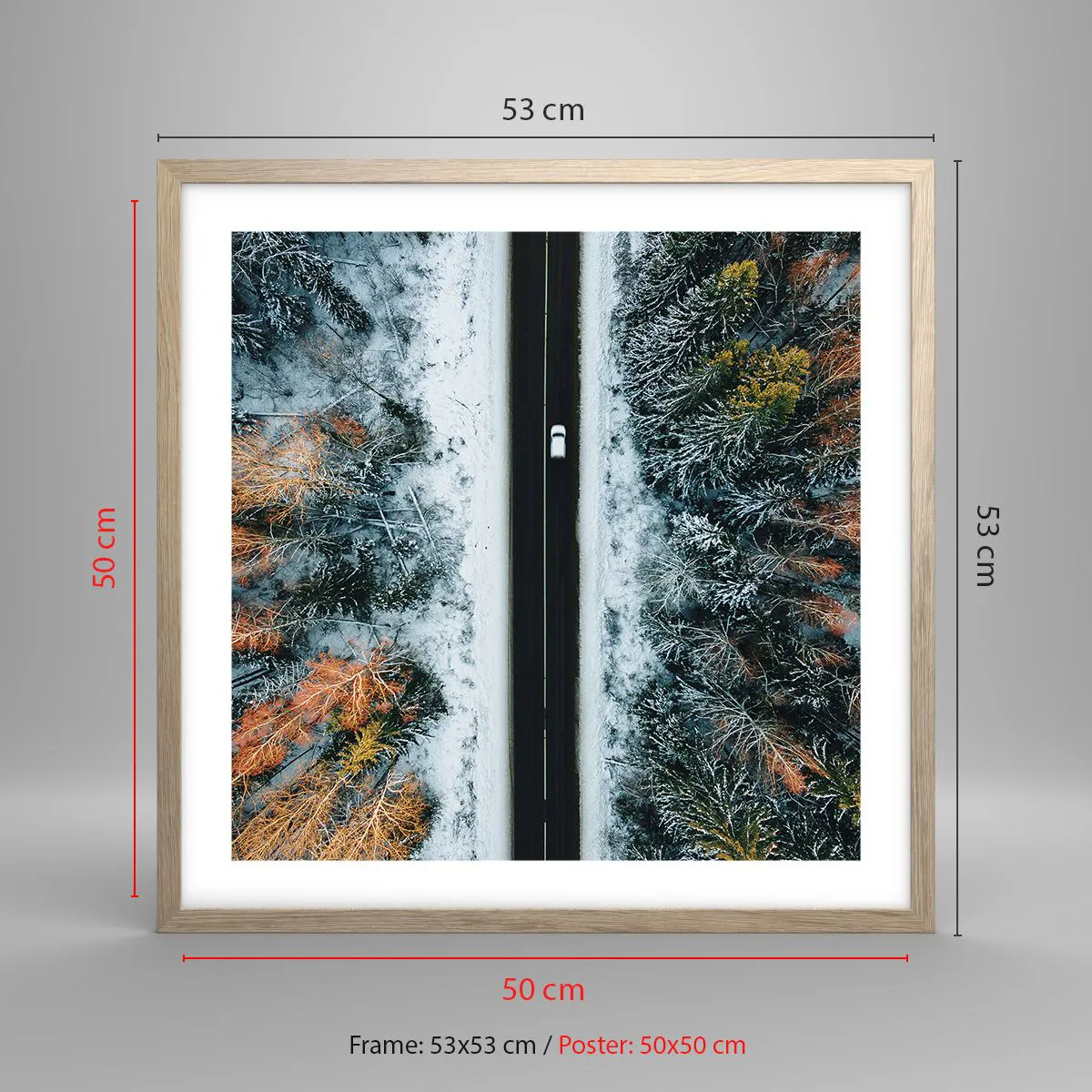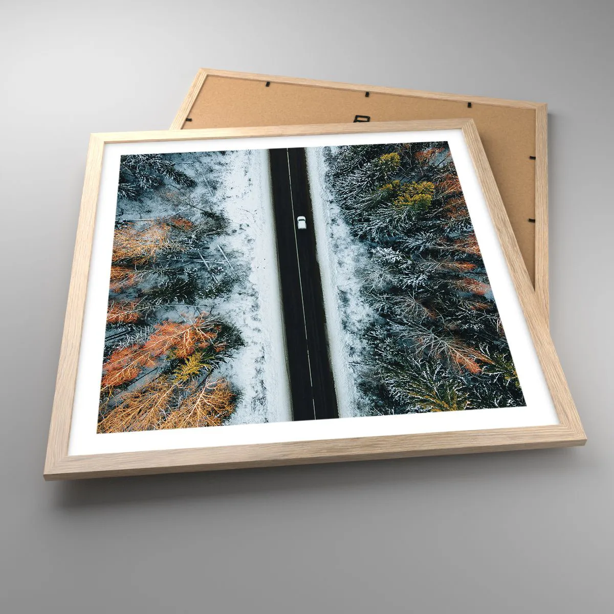 Affiche dans un chêne clair - Poster - Couper à travers la forêt d'hiver - 50x50 cm