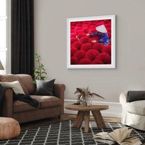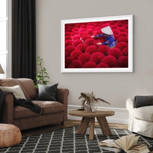 Affiche dans un cadre blanc - Poster - Dans un champ de riz - 50x40 cm