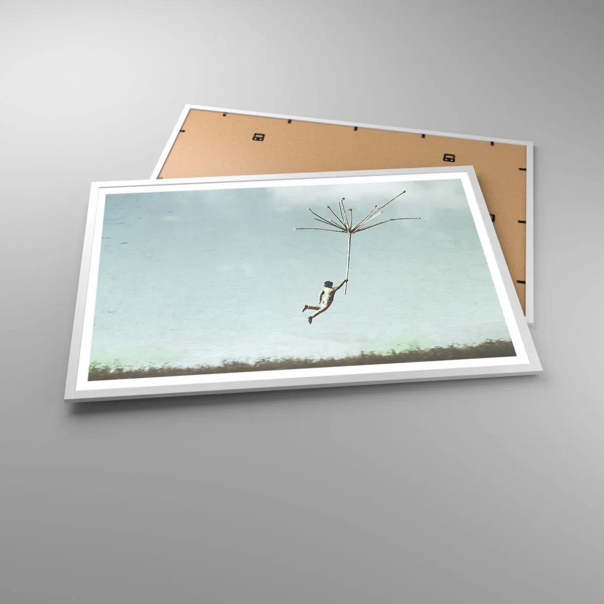 Affiche dans un cadre blanc - Poster - Cerfs-volants, pissenlits, vent - 91x61 cm