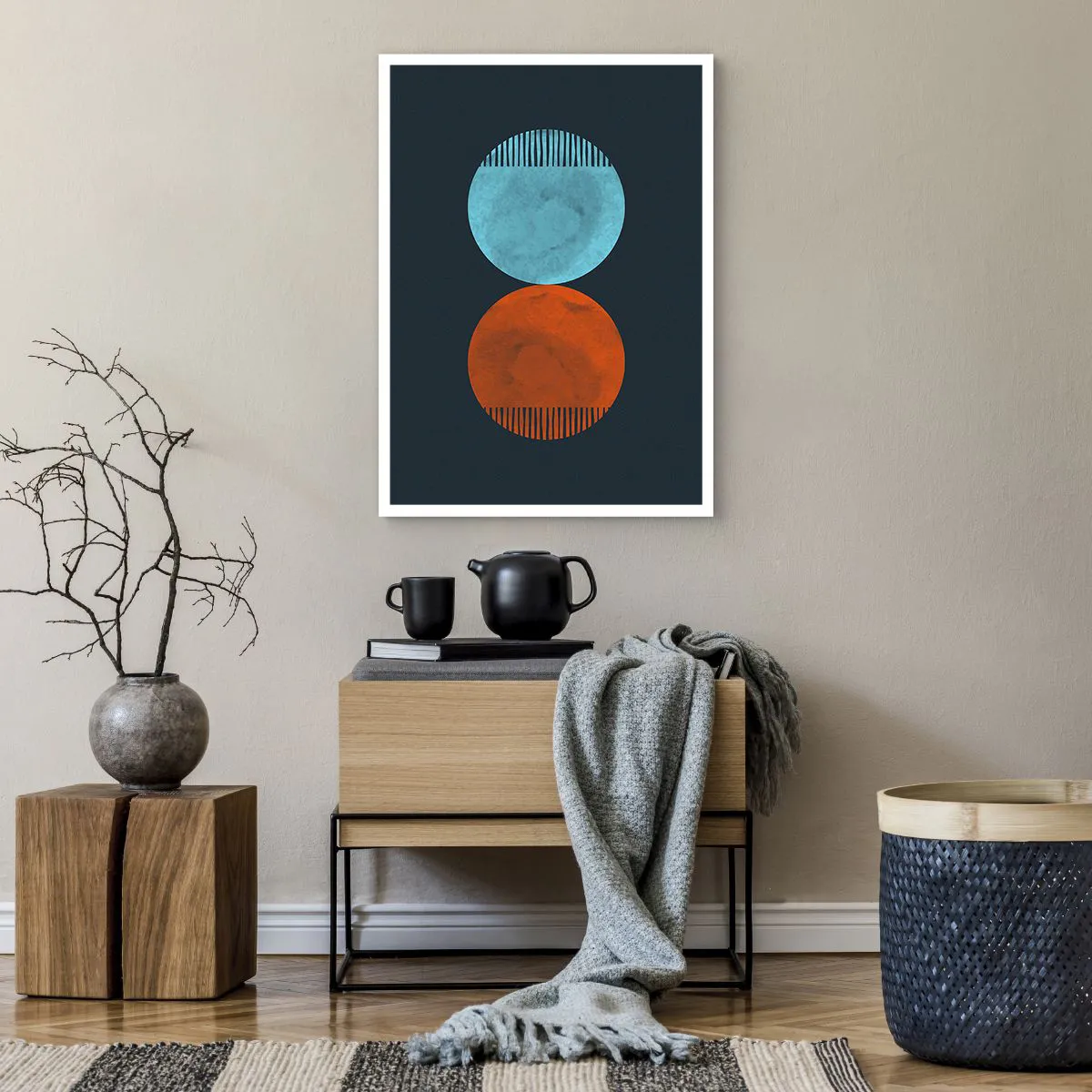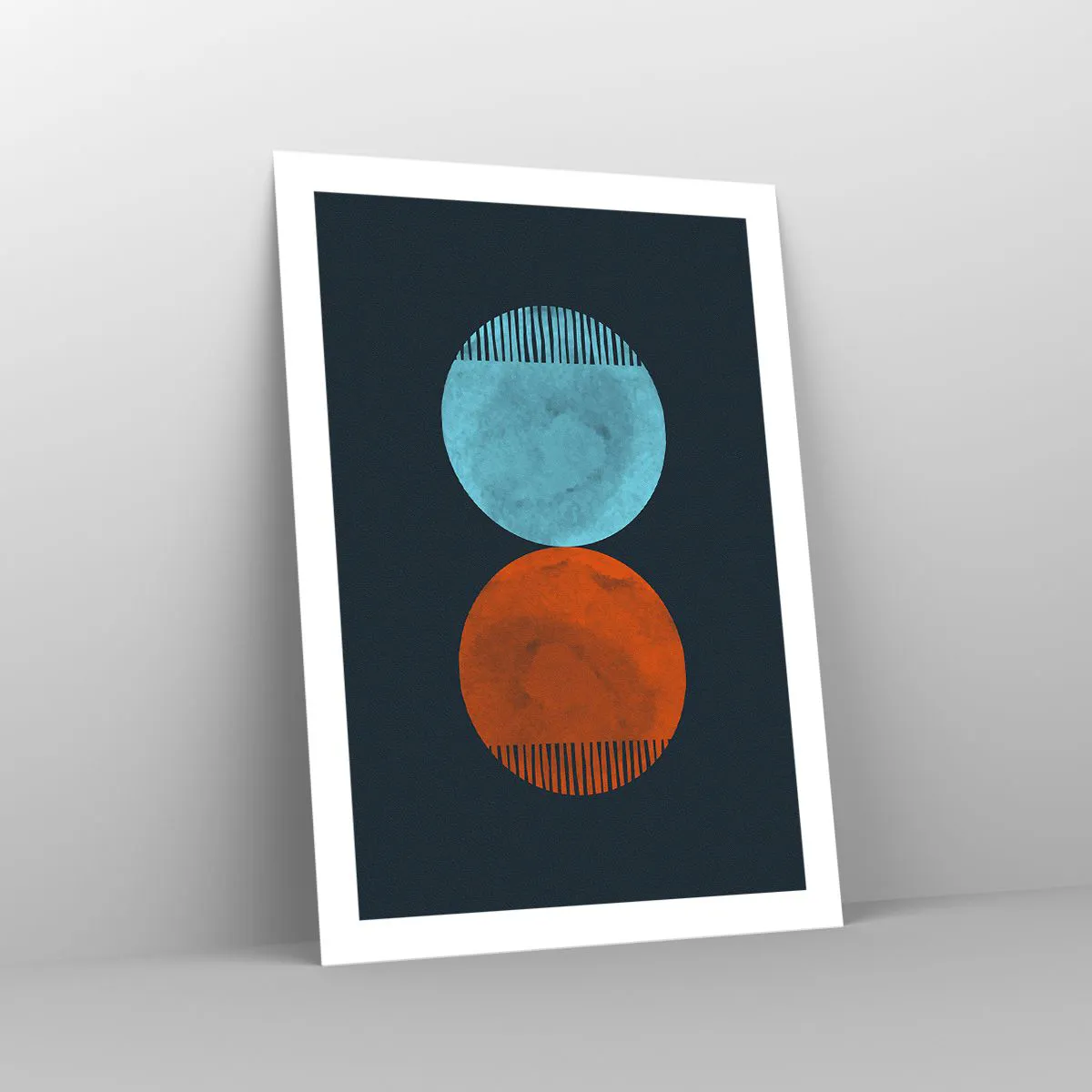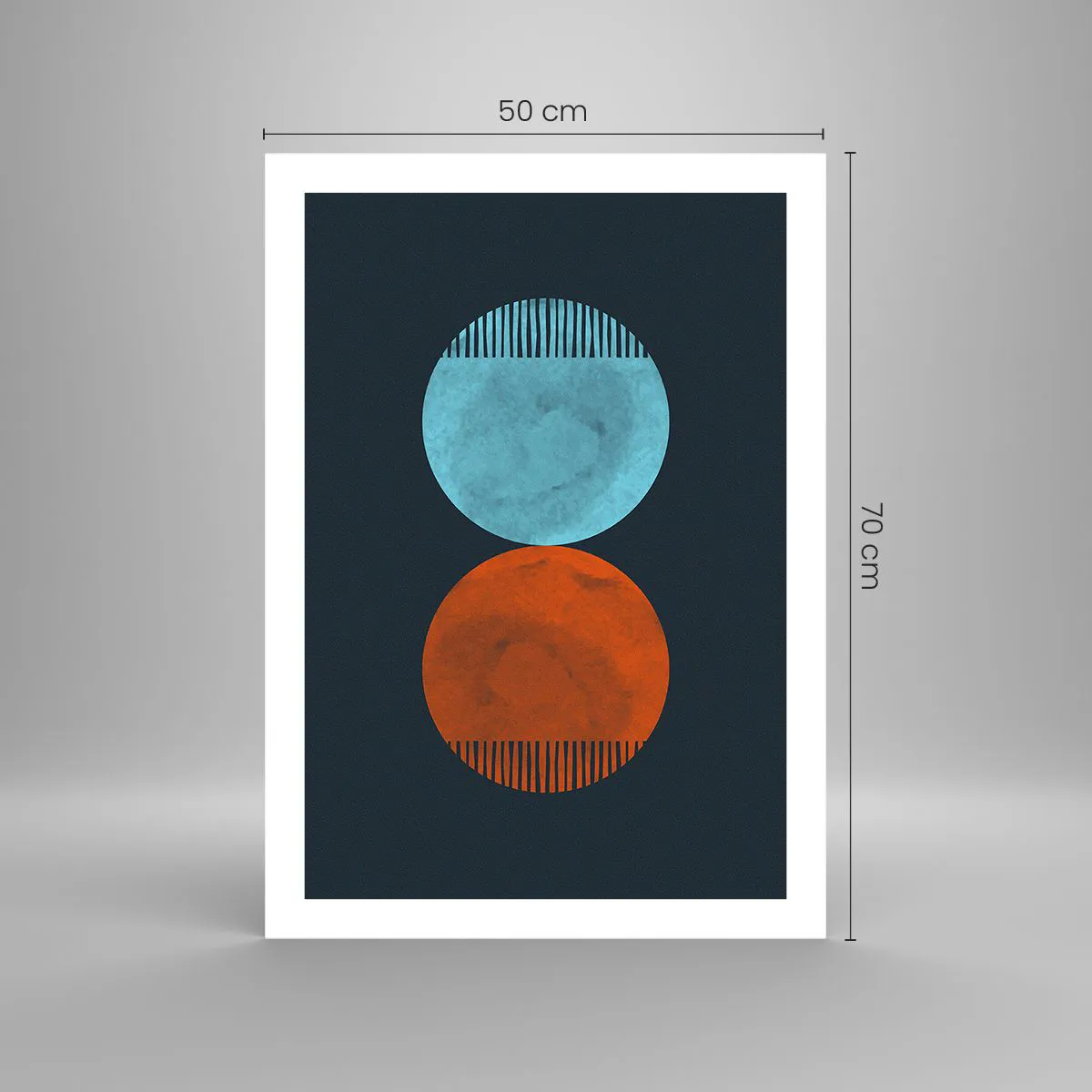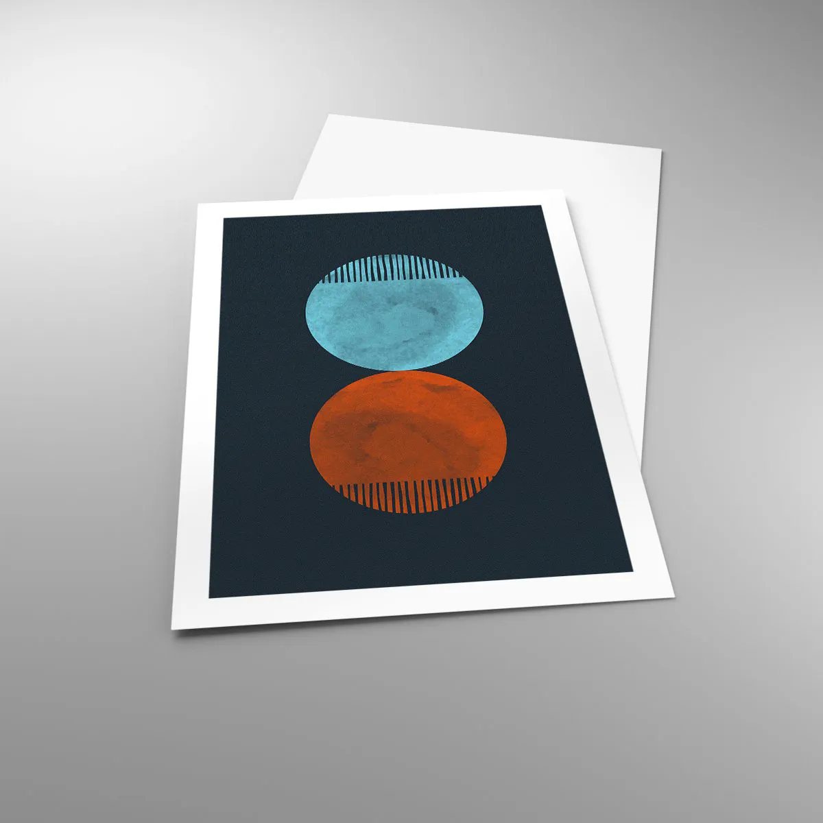 Affiche - Poster - Deux cercles – bleu et orange sur fond bleu marine - 50x70cm - Seulement la géométrie ? - Décoration murale moderne pour le salon et la chambre ARTTOR