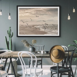 - Cette affiche représente des mouettes au bord de la mer sous un ciel nuageux. Les couleurs subtiles et le paysage naturel évoquent l'harmonie et la tranquillité. C'est la décoration idéale pour les intérieurs inspirés par la nature et le minimalisme.
