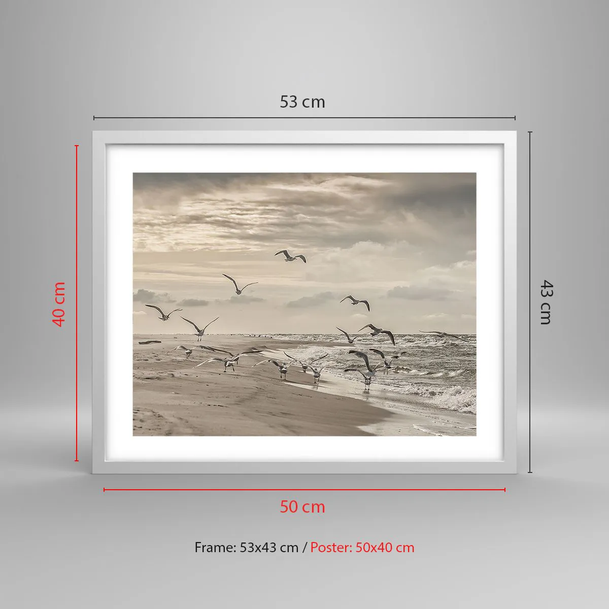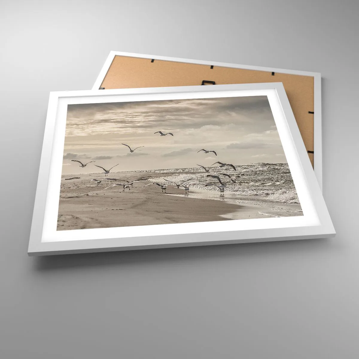 Affiche dans un cadre blanc - Poster - Le bruit de la mer, le chant des oiseaux - 50x40 cm