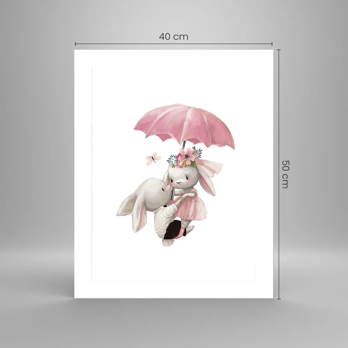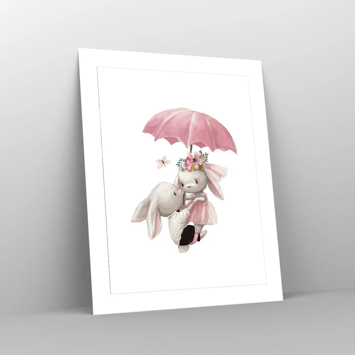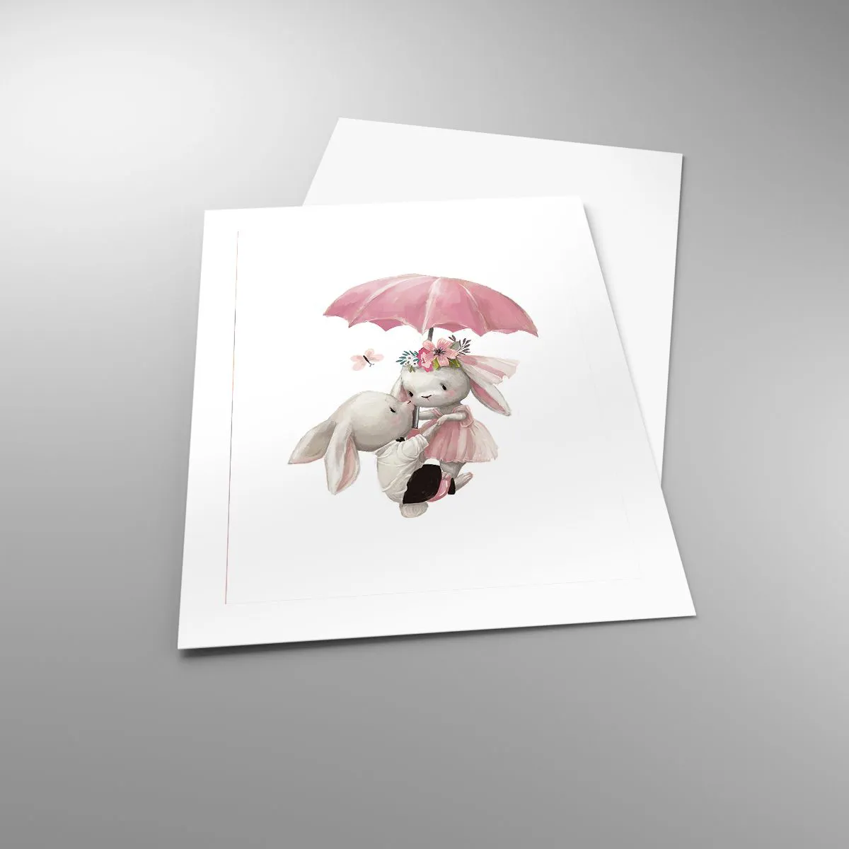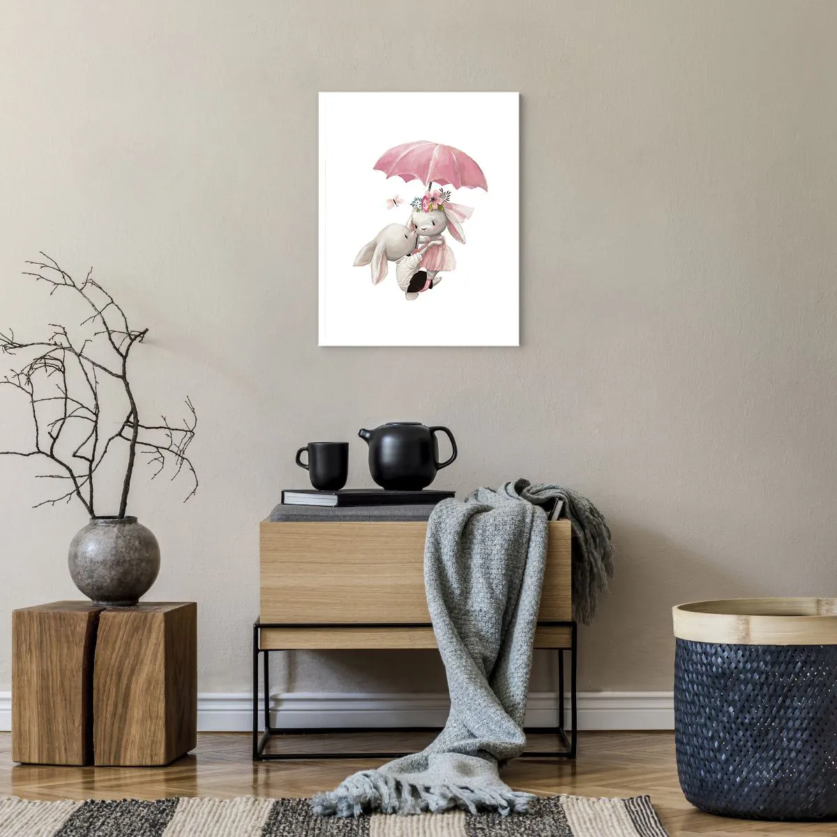 • Pour enfants, Lapins, Conte de fées, Pour les enfants, Pastel, Animaux, Pour la chambre des enfants Blanc, rose, gris, Verticale