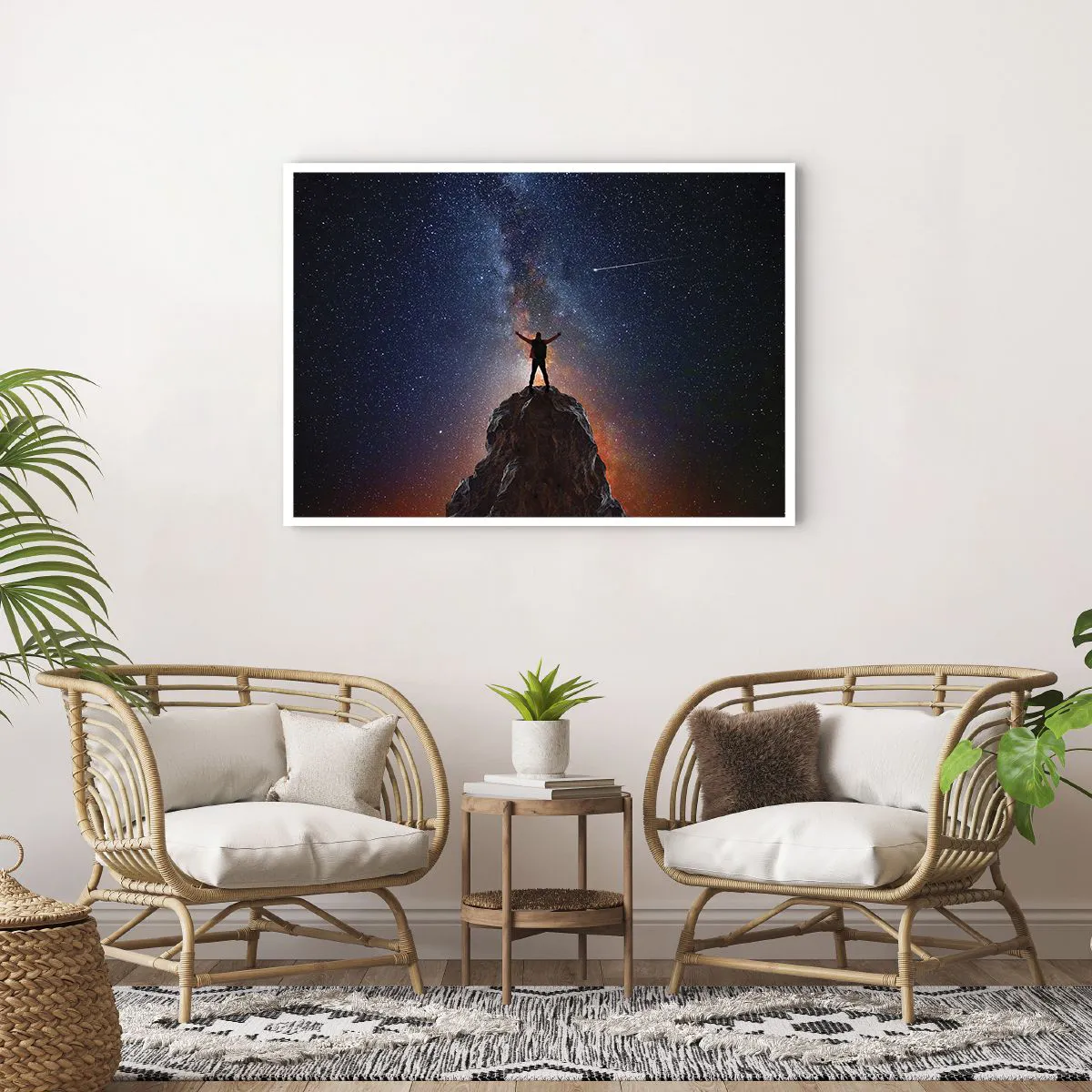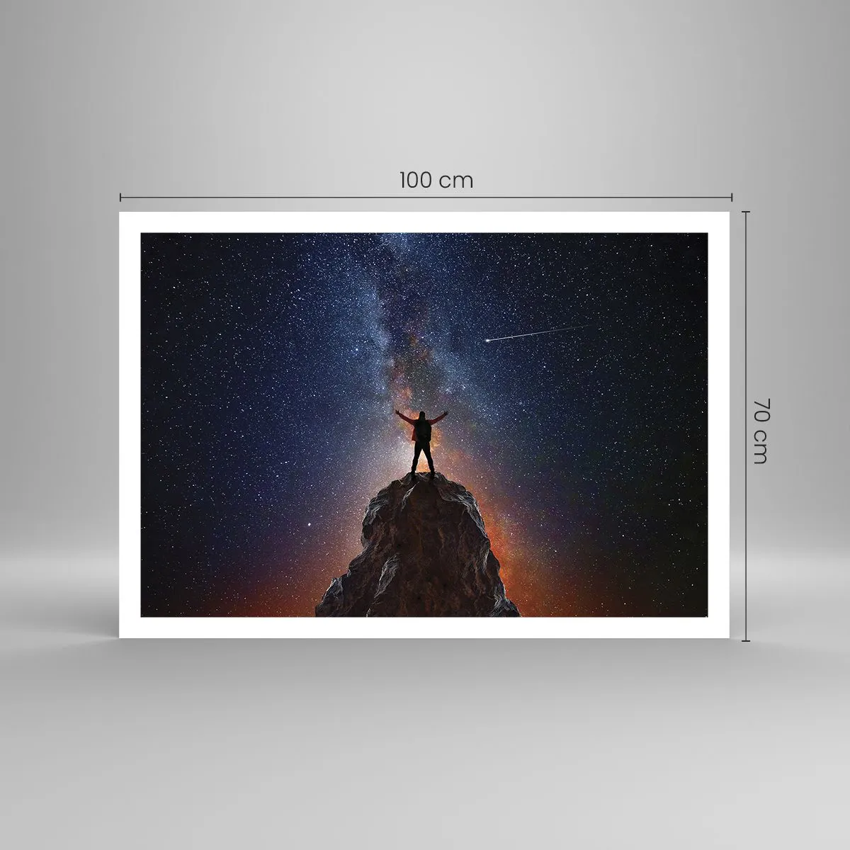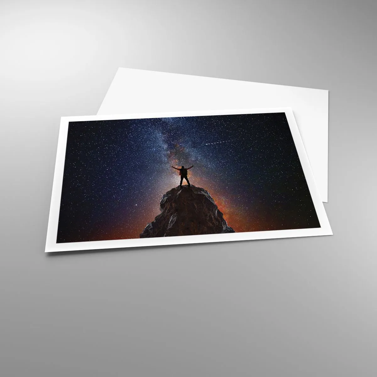 Affiche - Poster - Une silhouette au sommet d'une montagne sous un ciel étoilé - 100x70cm - Le force est avec moi! - Décoration murale moderne pour le salon et la chambre ARTTOR