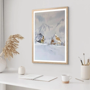 Affiche dans un chêne clair - Poster - Dans une vallée enneigée - 40x40 cm