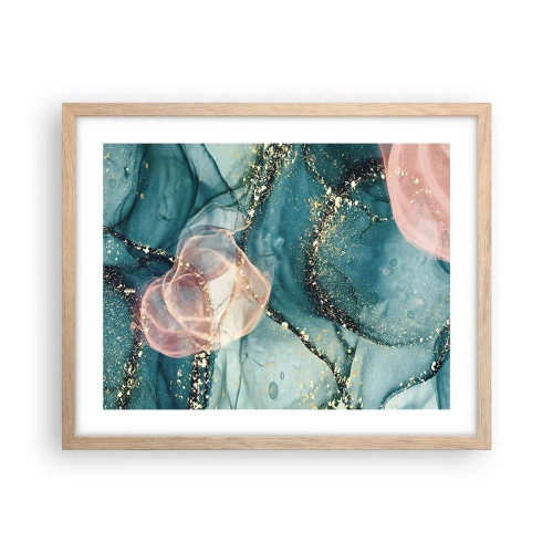Affiche dans un chêne clair - Poster - Soie bleu, tulle rose - 50x40 cm