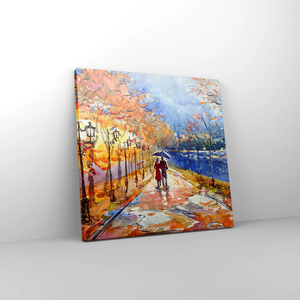 • Paysage, Park Avenue, arbres, Personnes, Villes, Paysages, Pour le bureau, Pour le bureau, Pour la salle à manger, Pour le hall, Pour le salon, Pour la chambre, Bleu, Orange, Carré
