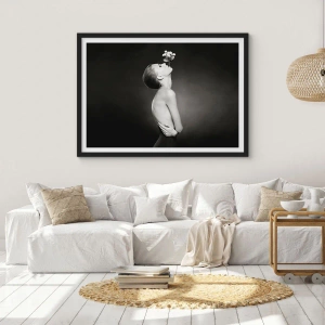 • Corps, Fleurs, Modèle, Noir et blanc, Personnes, Mode, Pour le hall, Pour le salon, Pour la chambre, Noir, Gris, Noir et blanc, Verticale